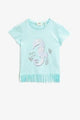 Koton Kids Girls' Black Printed Short Sleeved Cotton T-Shirt