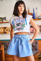 Olalook Women's Blue Pocket Elastic Waist Woven Shorts