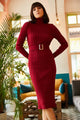 Olalook Women's Black Waist And Cuff Detailed Cuffed Dress
