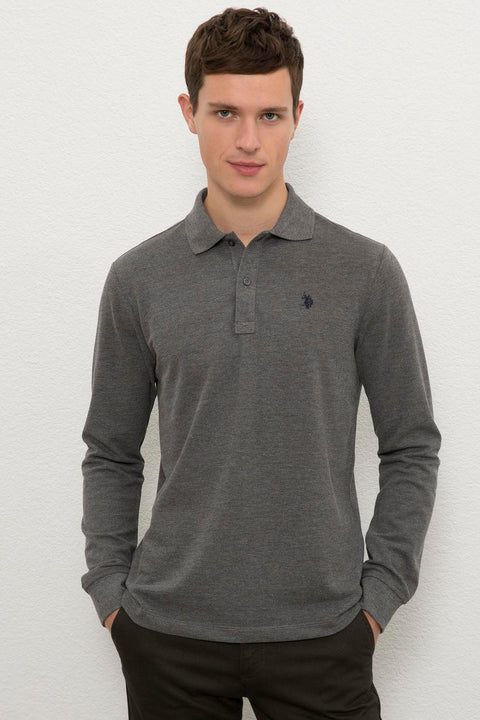 Us Polo Assn Men's Gray Sweatshirt Basic Color : Anthracite Mélange Fit : Regular Medicine : Sweatshirt Fabric Blend :100% Cotton Collar Type : Polo shirt Pattern : Straight Pocket Type : Pocketless Arm length : Long arm Model Information : Height : 185...