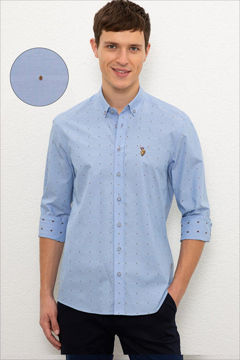 Us Polo Assn Men's Blue Shirt Long Sleeve Model Information: Size; 188 Kilo ;75 Chest ;95 Waist; 74 basin; 95 Code : 50226465-VR003 Fabric :100% Cotton .