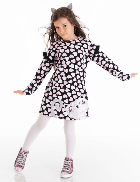 Denokids Silver Cat Girl Dress Model Code :CFF-20S1-053Colors :Black&PinkMaterial : %92 cotton %8 elastane